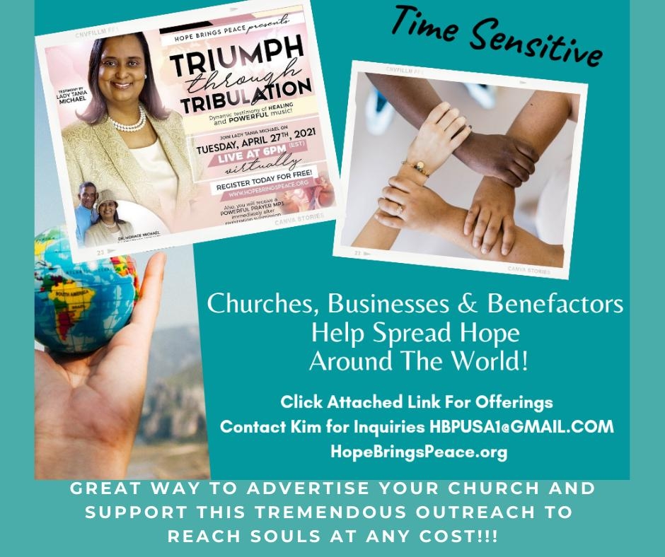 PLEASE CLICK HERE FOR OPPORTUNITIES TO FINANCIALLY SUPPORT THIS GREAT WORK : HOPE BRINGS PEACE